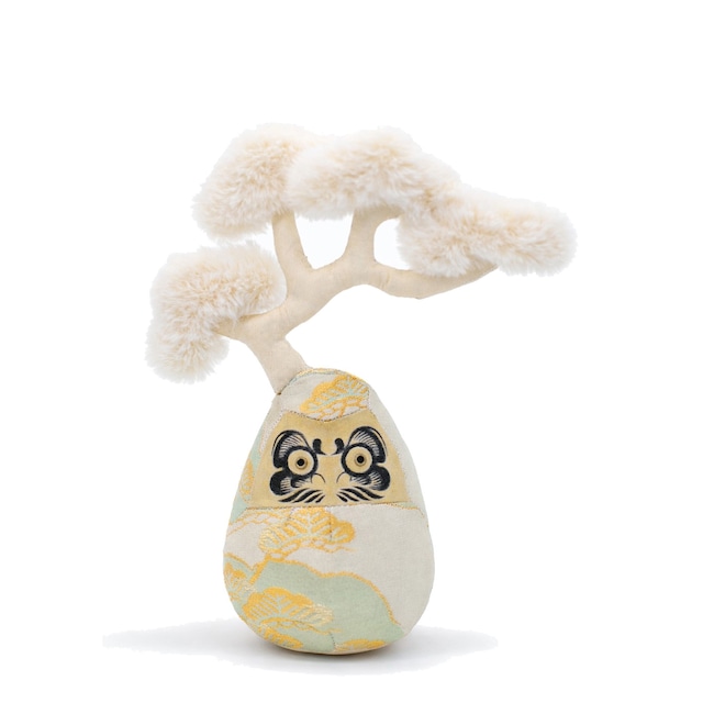 ダルマ武蔵では、かつて誰かが大切に纏っていた帯を再利用し、布となり、かたちとなり達磨へと生まれ変わらせています。失われゆくものの中に、変わらぬ美しさを見出し、未来へと手渡す。そんな静かな挑戦です。 「松模様」は、厳しい冬にも緑を保つ常盤木(ときわぎ)であることから、長寿、不老長寿、長久(いつまでも続くこと)を象徴する、非常に縁起の良い「吉祥文様」です。 ■こちらは再販可能です。生地がなくなり次第終了いたします。 生地:着物リサイクル帯 毛:エコファー生地 中身:綿花 高さ:達磨約12cm ◯箱入り 【SIZEについて】 こちらは約12cmの達磨。約16cm達磨ご希望の方は受注制作にてお作りいたします【価格:12,000円】 ___________________ 「変幻自在なNEO達磨」をテーマに達磨というシンボルに、禅・宇宙・自然・死生観を重ね、伝統と現代のあわいを漂う未来の民藝を模索中。 東北に根づく祈りの文化や手仕事への敬意を込め、不要になった着物や帯、古布に宿る時間と記憶に新たな素材を組み合わせ、祈りと願いの象徴としての達磨を制作。 ダルマ武藏では伝統的な張子達磨とは異なり、独自の型紙から作る布達磨を制作しております。 At Daruma Musashi, we repurpose obi sashes that were once carefully worn and cherished by someone, transforming them into fabric, form, and ultimately, into Daruma. Within things that are slowly disappearing, we seek enduring beauty and pass it gently on to the future. Material: Upcycled kimono obi fabric Fur: Eco-fur fabric Filling: Cotton Height: Approx. 12 cm Packaging: Comes in a box
