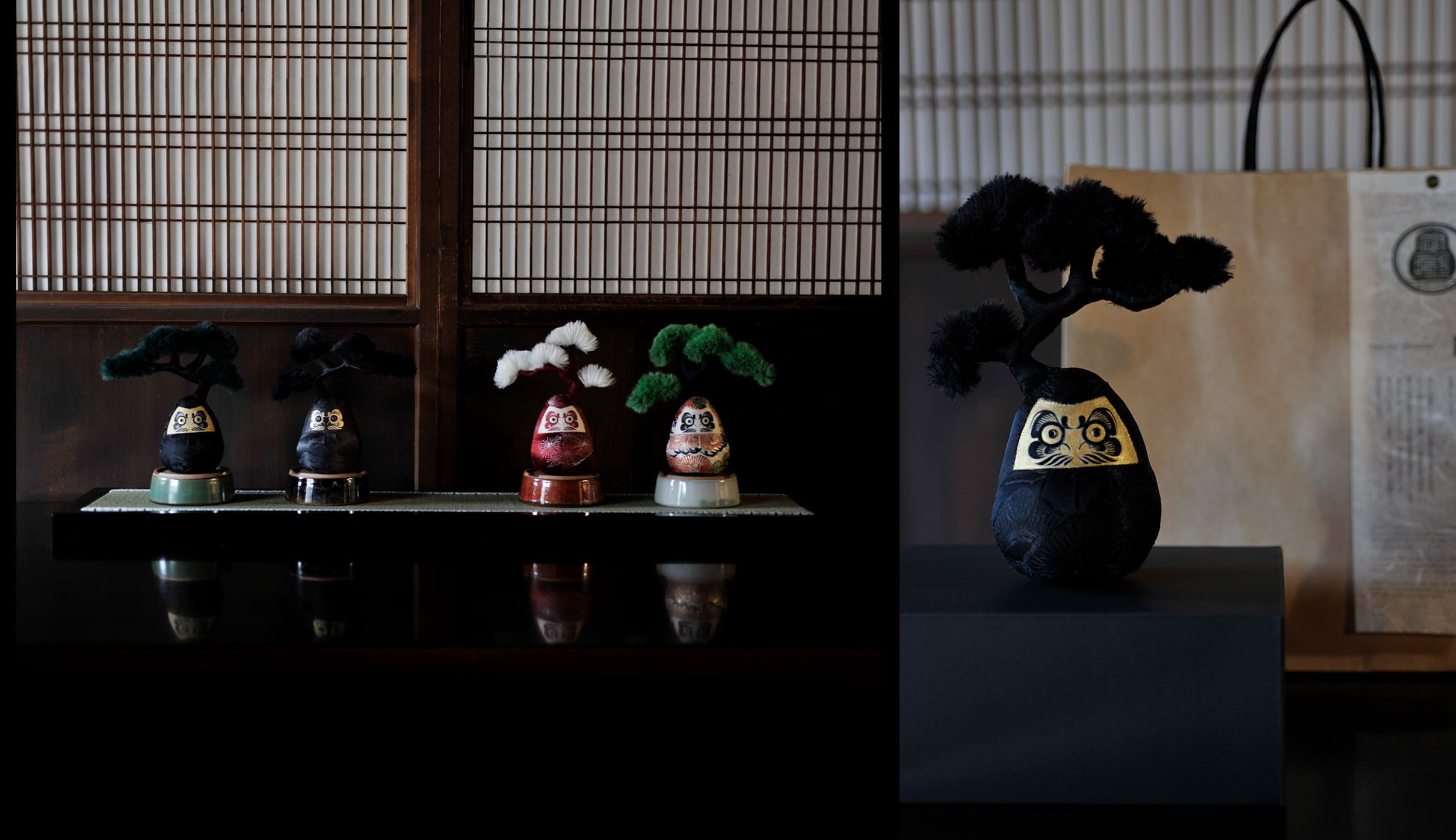 達磨の頭から伸びる枝や芽には、手をかけ、目を向け、時間を重ねることで育っていく盆栽の精神を重ねました。