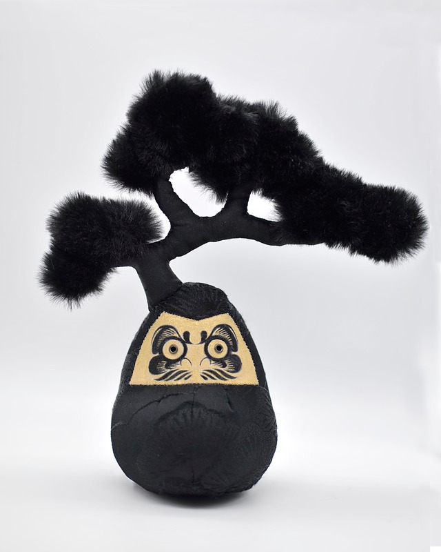 盆栽達磨【黒帯 松模様】◆Bonsai Daruma