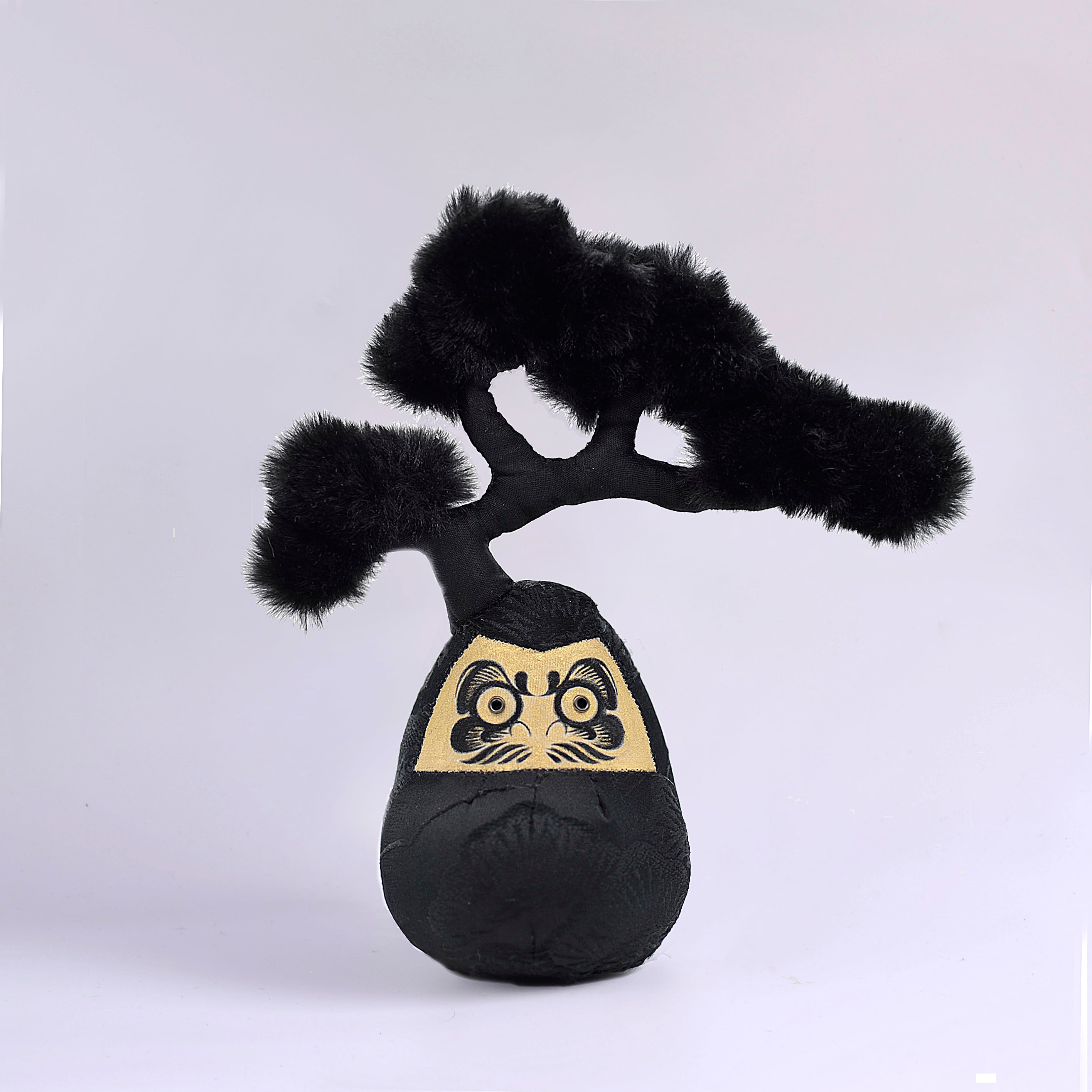 盆栽達磨【黒帯 松模様】◆Bonsai Daruma