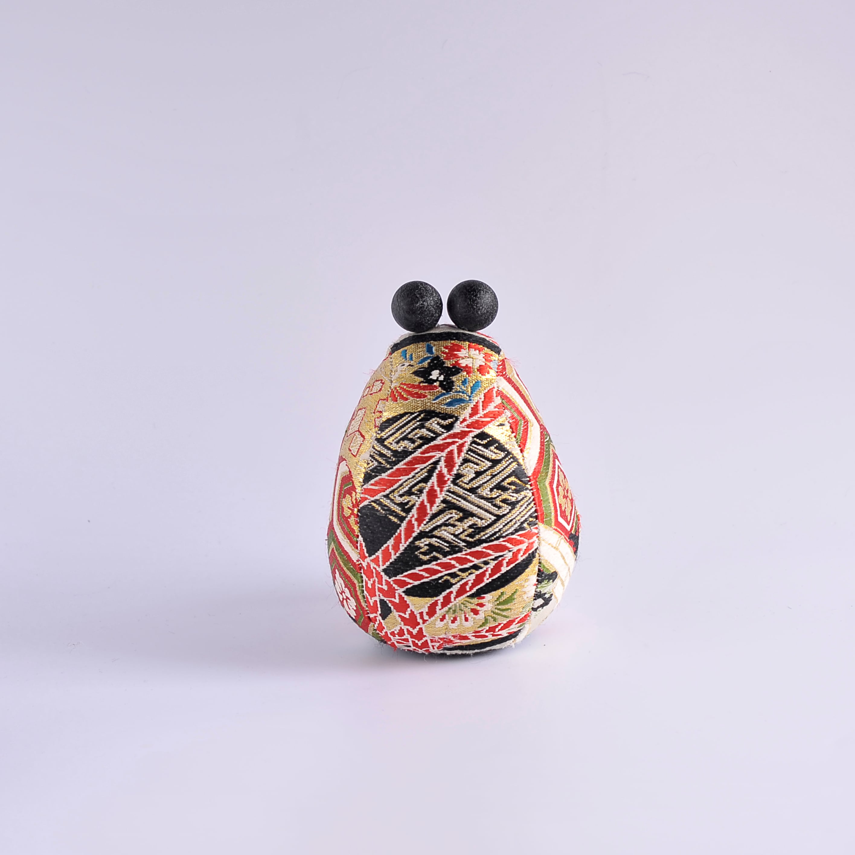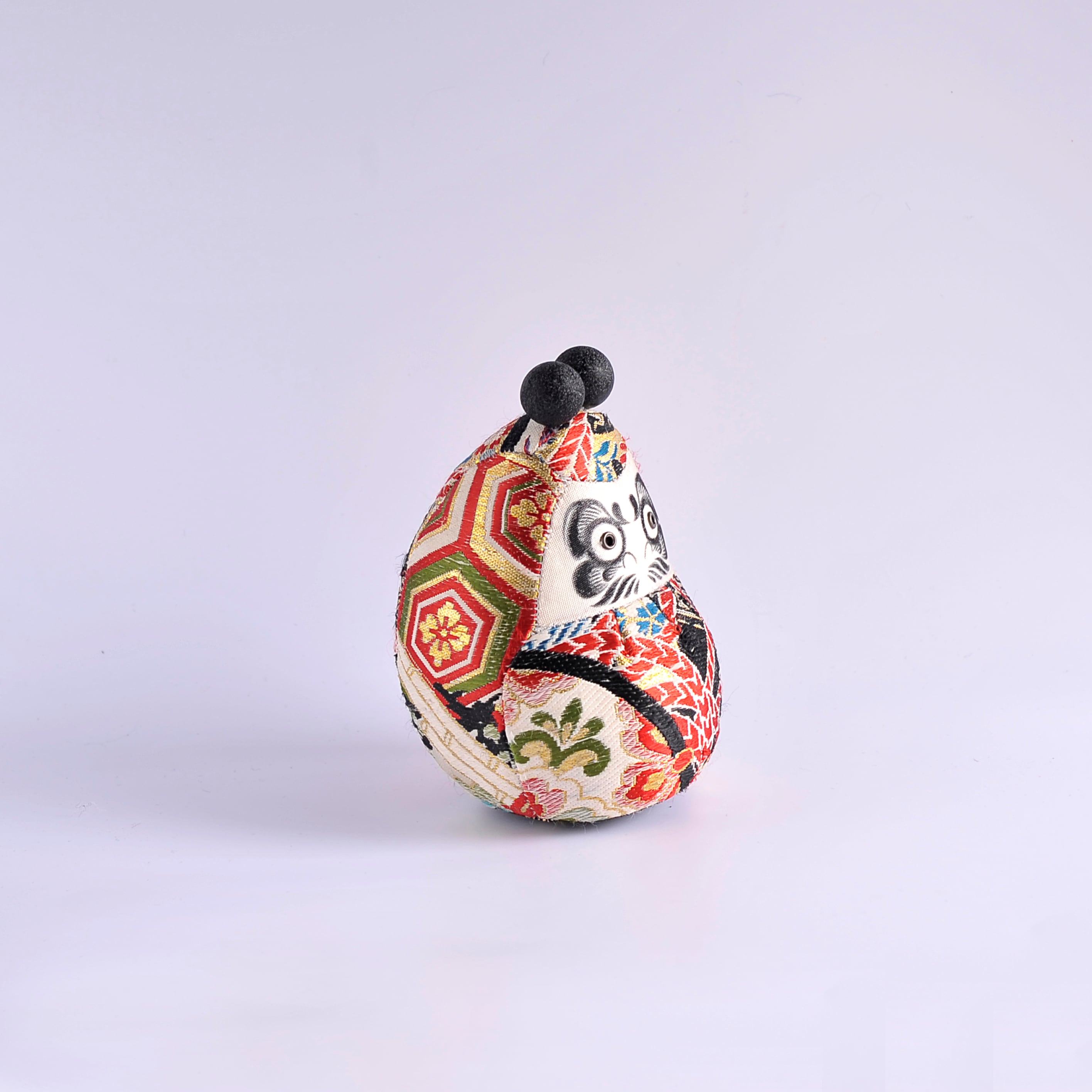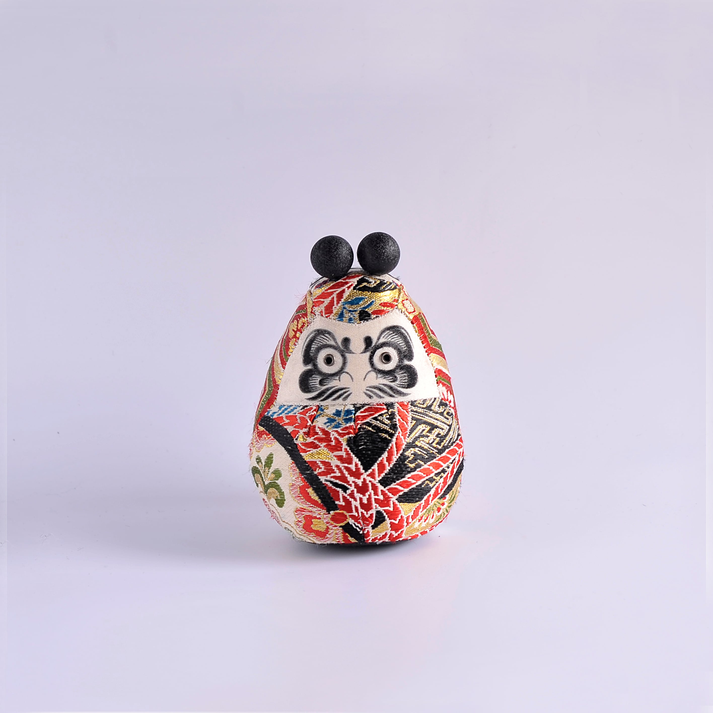 This Daruma is adorned with a Suikin bell that produces a clear, delicate sound when gently moved.