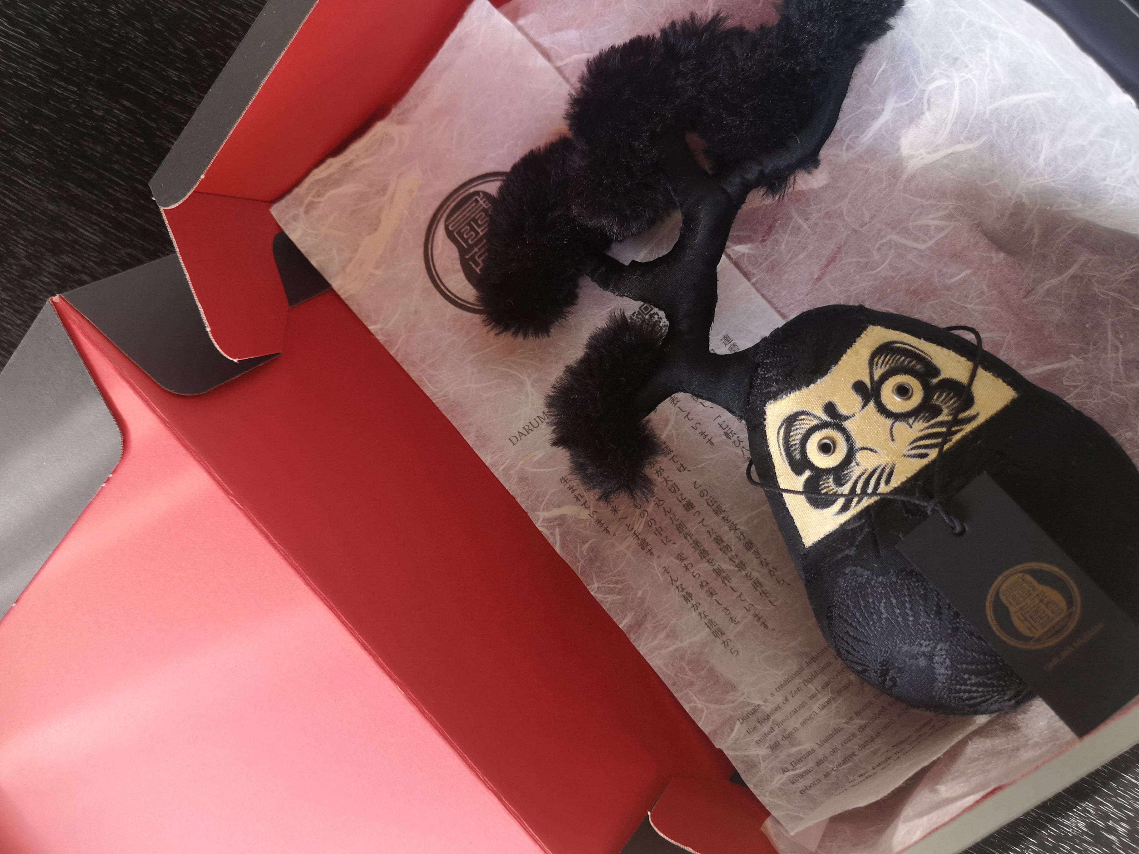 Through reuse and transformation, they become fabric, form, and finally, a Daruma.