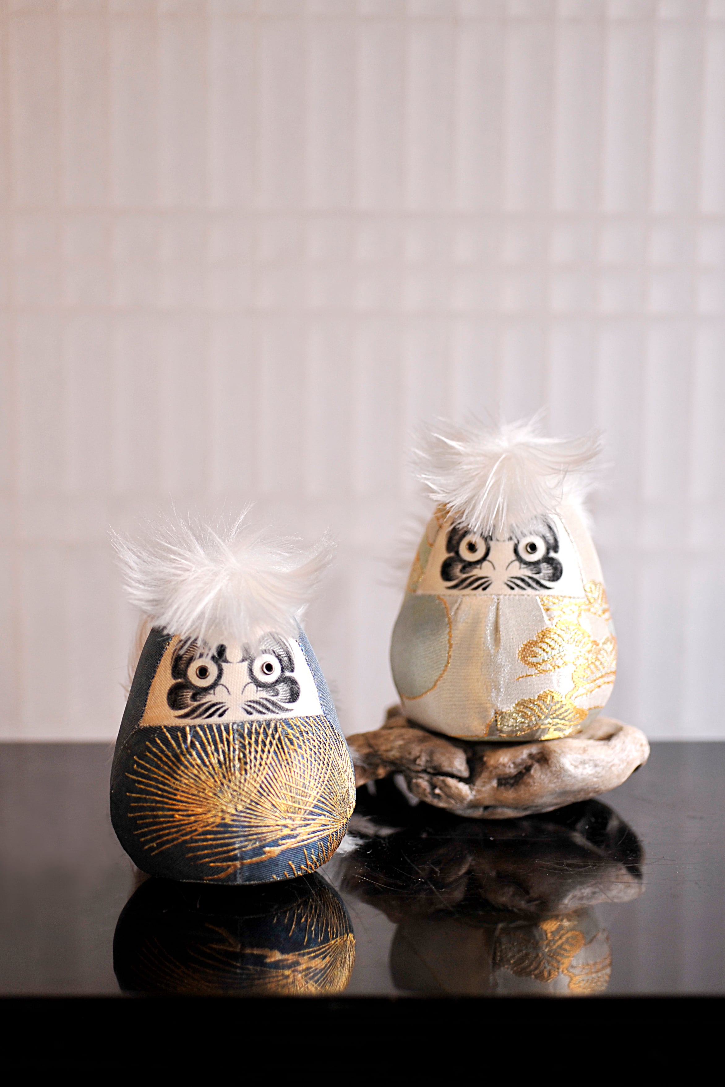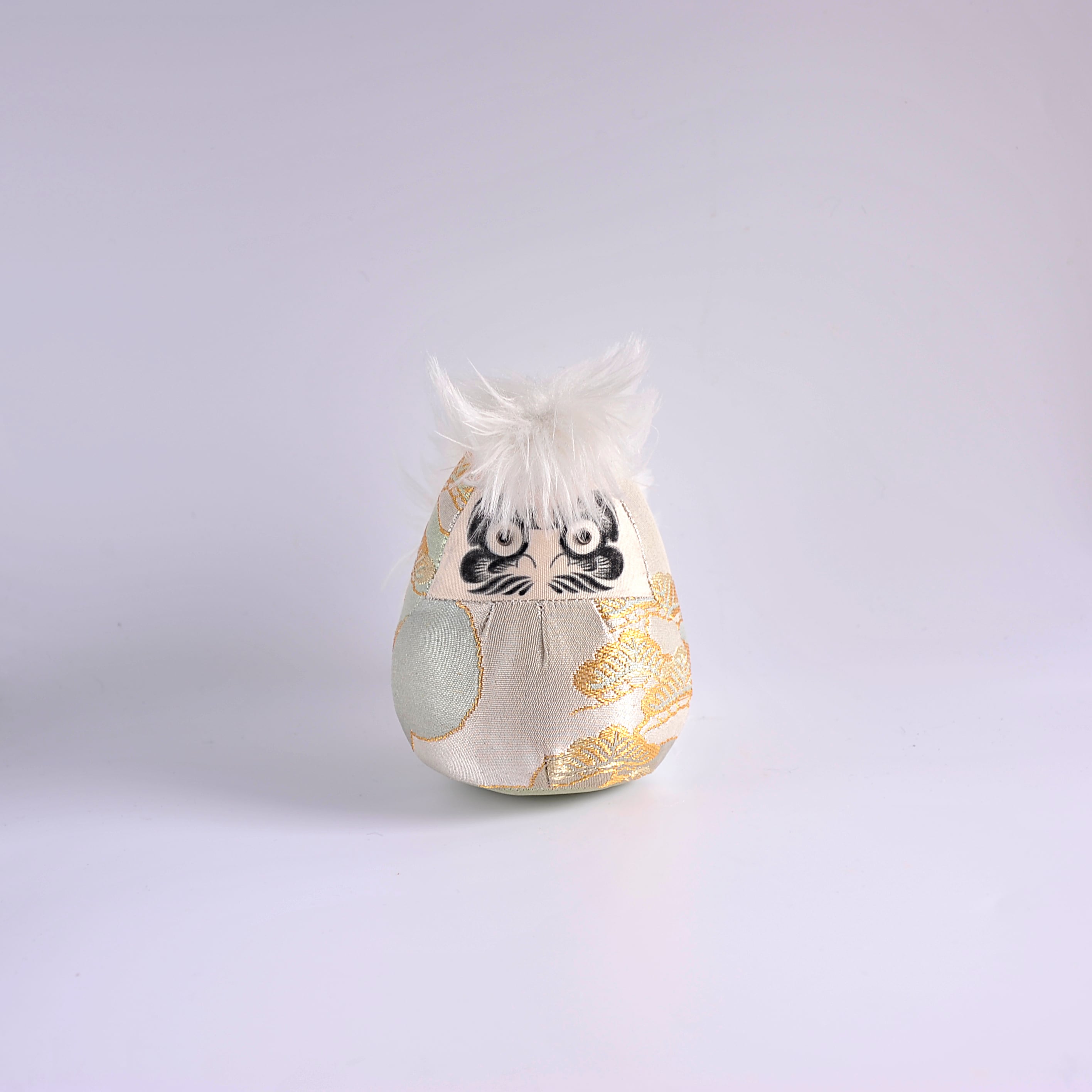 東北に根づく祈りの文化や手仕事への敬意を込め、不要になった着物や帯、古布に宿る時間と記憶に新たな素材を組み合わせ、祈りと願いの象徴としての達磨を制作。 ダルマ武藏では伝統的な張子達磨とは異なり、独自の型紙から作る布達磨を制作しております。